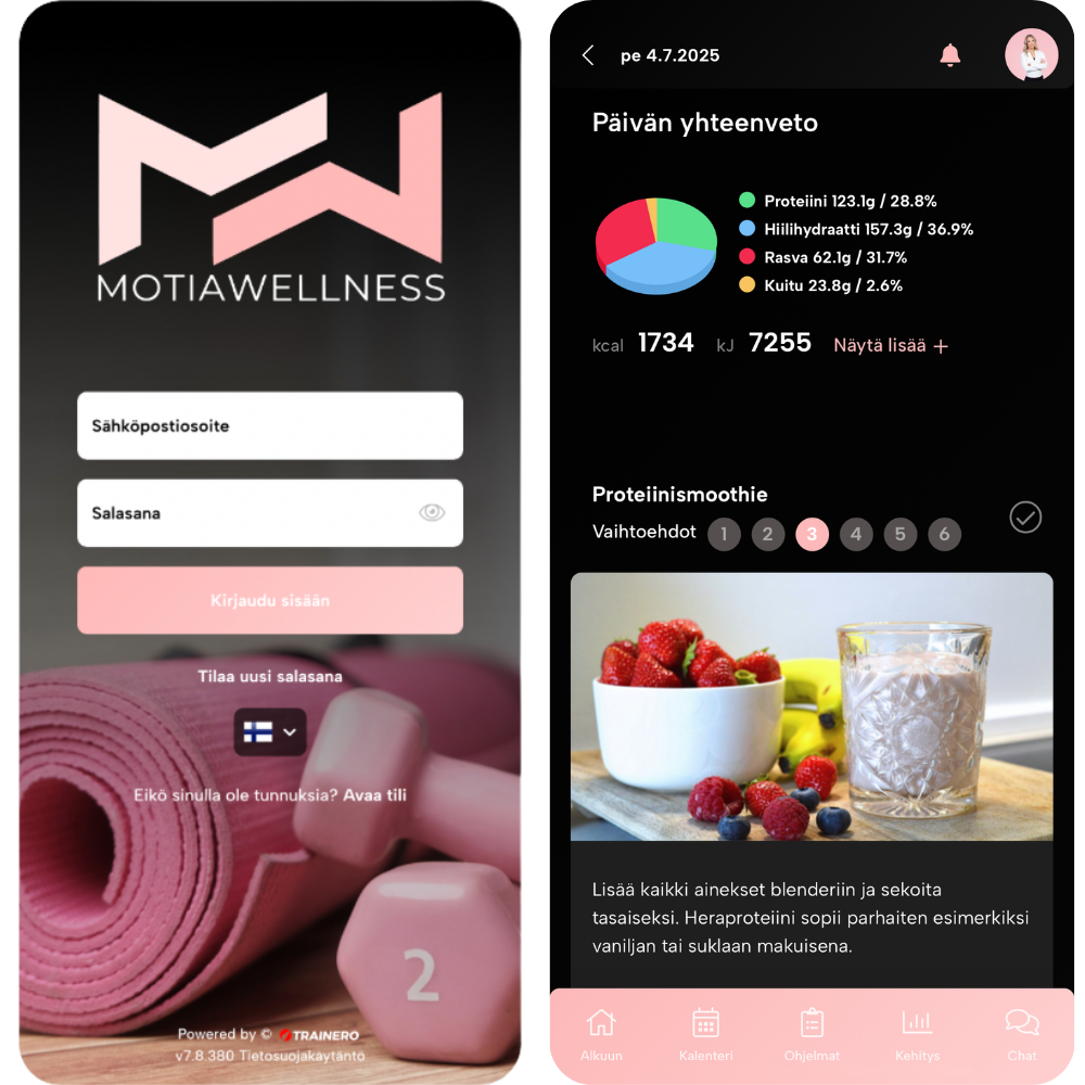 Motian valmennuspalvelut tukevat kokonaisvaltaista hyvinvointia yksilöllisesti ja tutkittuun tietoon pohjautuen – etänä, läsnä tai osana työyhteisöä. Meiltä saat henkilökohtaista valmennusta, räätälöidyt ravinto- ja liikuntasuunnitelmat sekä jatkuvan tuen kestävään arjessa jaksamiseen lähtötasosta riippumatta.